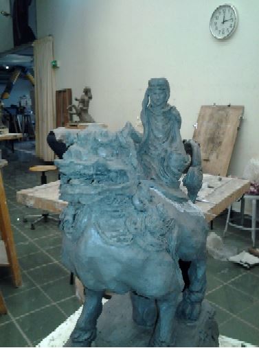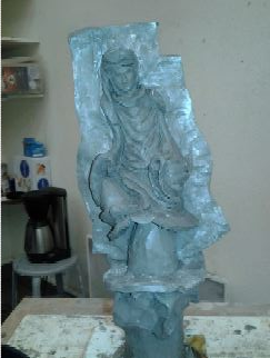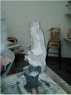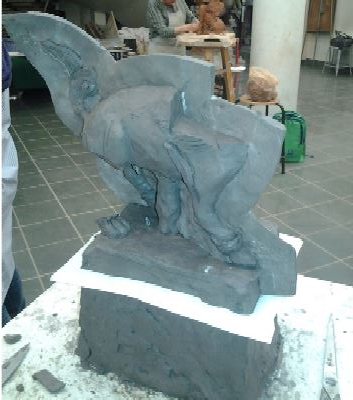 Il la dégrossit pour éliminer toute matière superflue et pour ébaucher la forme avant le traitement des détails. Ensuite, il modèle les volumes et détermine la texture finale grâce aux finitions en utilisant différents outils pour effectuer ces opérations.
